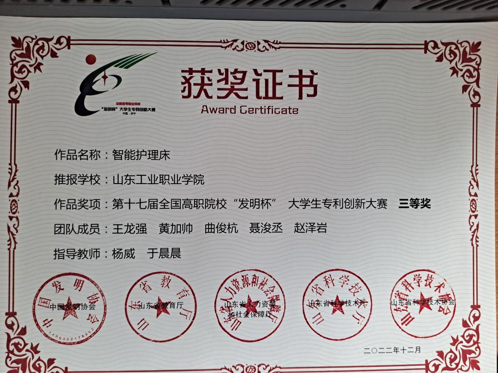 近日,公司员工在第十七届全国高职院校“发明杯”老员工专利创新大赛中获奖。本次大赛由中国发明协会、山东省教育厅、山东省人力资源和社会保障厅、山东省科学技术厅、山东省科学技术协会主办,吸引了137所院校的15006项作品参加。