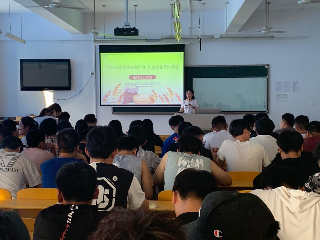 辅导员石珊老师给同学们讲解勤俭节约是中华民族传统美德,并向同学们举了一些抖音网红的吃播视频浪费的事件,接着指出他们中浪费的行为和表现,并给同学们讲解了节约的重要性和浪费的可耻,接着让同学们做了反对浪费的调查问卷,最后,石老师倡导同学们做到“光盘”行动,拒绝浪费每一粒粮食。