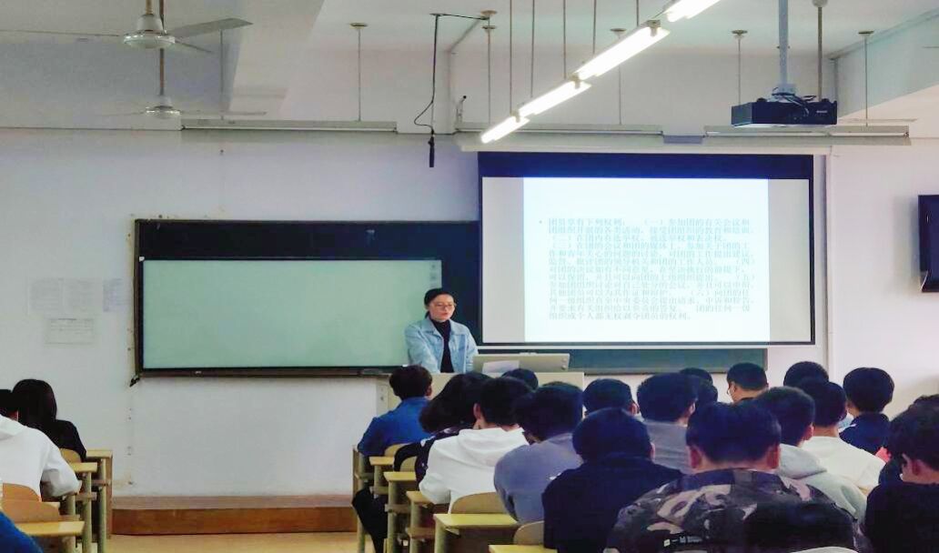 本次主题团课于晨晨老师带领入团积极分子们一起详细学习《中国共产主义青年团章程》,并向同学们讲解要想成为一名正式团员所要具备的条件。随后于晨晨老师生动的向同学们讲述共青团的历史、团章、团徽、团旗的相关知识,团课上每个同学都很认真地做笔记,积极地融入到团课学习之中。
