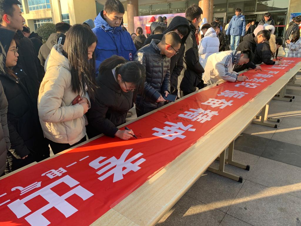签字仪式开始前,老师给同学们讲解了诚信考试的重要性,并强调了针对作弊行为的相关规定。考试作弊践踏了诚信理念,会影响同学们学习的积极性,干扰了良好风气的形成。最后,在员工代表带领下同学们有序开展了签字仪式,在横幅上郑重签字,承诺诚信考试,远离作弊。