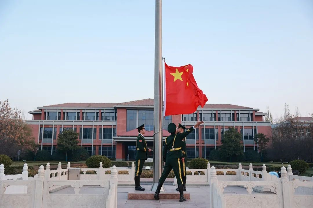 早上7点整,升旗仪式准时开始。伴随着庄严的国歌,迎着清晨的第一缕阳光,升旗手将国旗高高扬起。五星红旗冉冉升起,高高飘扬在学校上空,在场的每一位师生心中都怀着对国旗、宪法的崇敬。