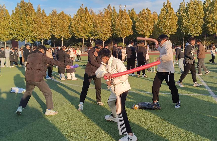 同学们前往学校操场参加活动,组织人员为参与者们发放了各种有趣的活动道具,活动安排进行了一些团队建设活动和挑战活动,例如齐眉棍、大风吹、蒙眼互打等,在参赛者了解比赛规则后进行活动挑战。