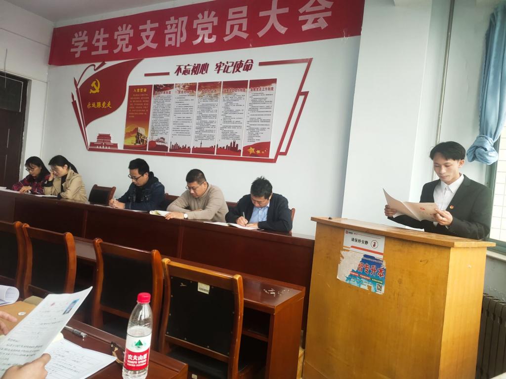 大会在雄壮的国歌声中开始。发展对象分别宣读了入党志愿书、向大会汇报了对党的认识、入党动机、本人履历、家庭成员和主要社会关系情况;入党介绍人分别介绍发展对象在思想、工作、学习方面的情况,并对其能否入党表明了意见;党支部委员会宣读了发展对象的审查意见;与会党员酝酿讨论,对发展对象能否入党进行了充分讨论;大会经过无记名投票的方式进行了表决;党支部委员会宣读大会决议,与会党员一致同意接收发展对象为中共预备党员。