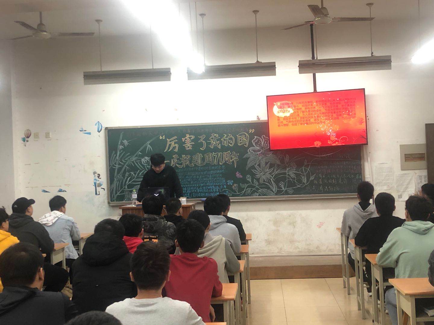 为了激发作为共青团员的光荣感和责任感,激发同学们对祖国的荣誉感,2020年10月20日晚上,各班的共青团员,带领同学们开展“厉害了我的国”–庆祝建国71周年的主题团课。