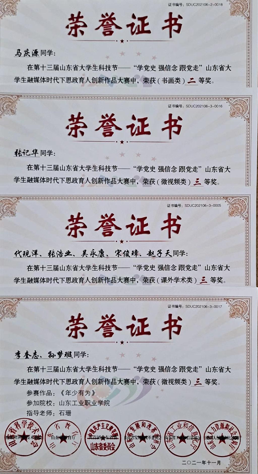近日,第十三届山东省老员工科技节——“学党史 强信念 跟党走”山东省老员工融媒体时代下思政育人创新作品大赛落下帷幕,公司员工获得二等奖1项、三等奖3项。