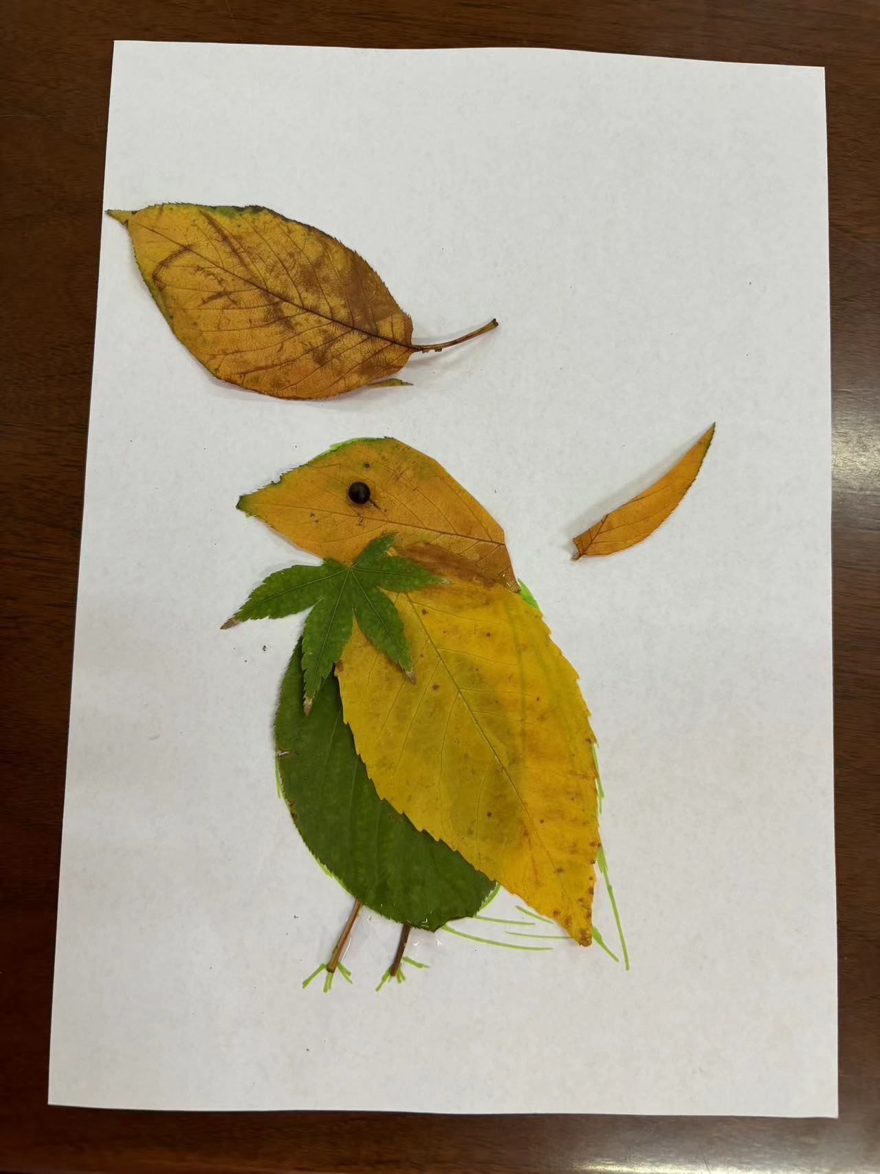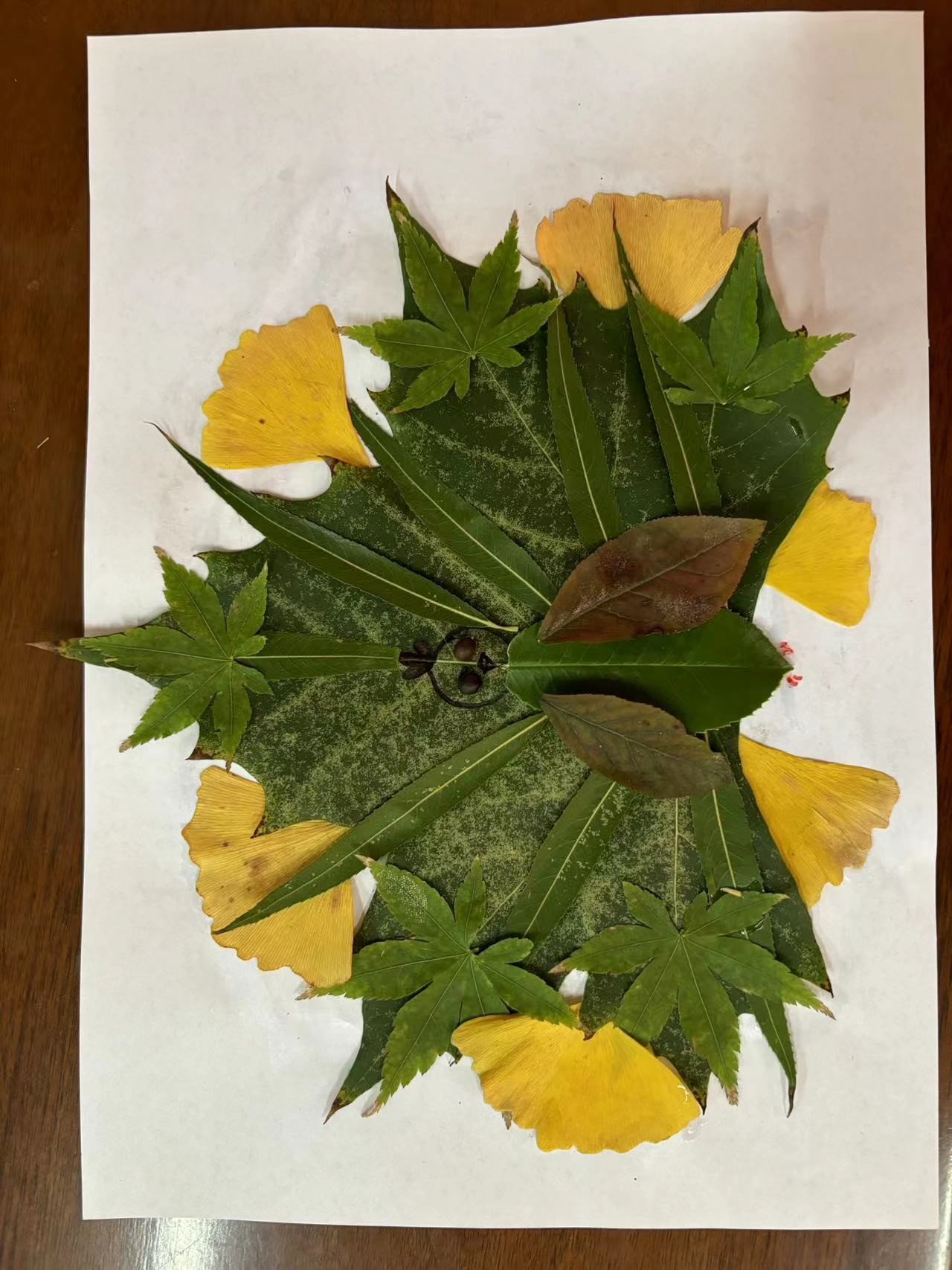 各式各样的树叶在社区孩子们的手里摇身一变,变成了一幅幅充满童趣的创意作品,到处都体现出了孩子们内心深处对大自然美好的诗意表达。