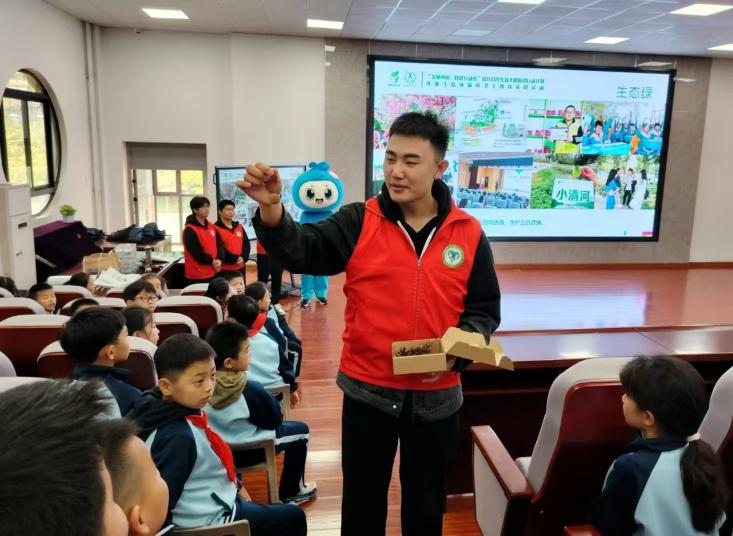 活动自9月正式启动后,足迹遍布淄博市张店区的十所学校,其中包括绿杉园小学、淄博外语学校、湖田小学、凯瑞小学北校、城中小学、世纪花园小学、柳泉小学、兴学街小学、盛湖小学以及淄博修文外国语学校等,为千余名师生带去了精彩纷呈的生态环保知识盛宴,累计志愿服务时长高达 216 小时。在活动现场,生态环境志愿者携手中国生态环境保护的萌宝吉祥物“小山”和“小水”,以最热烈的方式欢迎每一位师生的到来。他们精心展示各类珍贵的标本,生动地分享捡秋过程中的奇妙体验,与师生们共同深入学习《十条》规范,全力助力生态戏剧即兴展演活动的顺利开展,还郑重地向每一位同学颁发纪念物品,以严谨细致的态度扎实做好每一项宣传保障工作,确保活动的每一个细节都尽善尽美。活动的各个环节中,都能看到志愿者们忙碌而坚定的身影,他们宛如生态环保理念的忠诚使者,用实际行动生动诠释着生态文明、绿色低碳理念的深刻内涵,并全力推动其广泛传播。在这一过程中,志愿者们自身的意识与行动也在不断地交融升华,综合素养得到了进一步的巩固和显著提升,实现了自我价值与社会价值的有机统一,成为了环保道路上一道亮丽的风景线。