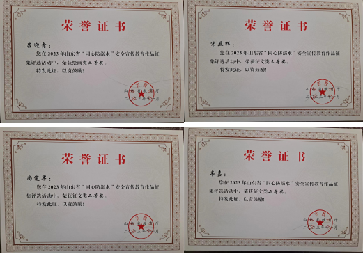 近日,从山东省教育厅获悉,公司师生在2023年山东省“同心防溺水”安全宣传教育作品征集评选活动中获得二等奖3项、三等奖2项。