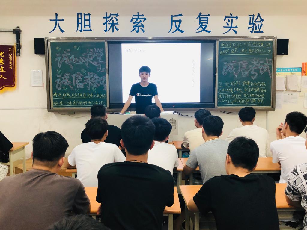 此次班会在各班教室有序进行,并由本班学习委员主持。班会上,各班学习委员用生动的语言为大家讲解了诚信考试的意义以及考试作弊的危害,加深了同学们对诚信考试的理解。班会上,各班学习委员还利用多媒体设备为同学们播放了有关诚信考试的视频,使大家进一步了解了诚信应考的重要性。同学们也对学习委员提出的问题积极回答,纷纷提出自己对诚信的见解和看法,并分享了一些关于诚信的小故事,班会氛围十分活跃。