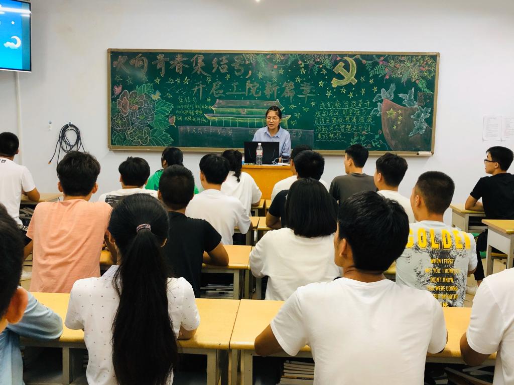 为了提高同学们的思想品德和政治素养,营造良好的学习氛围,9月10日晚自习期间,我系员工会组织部组织各班开展了以“吹响青春集结号,开启工院新篇章”为主题的主题团课。
