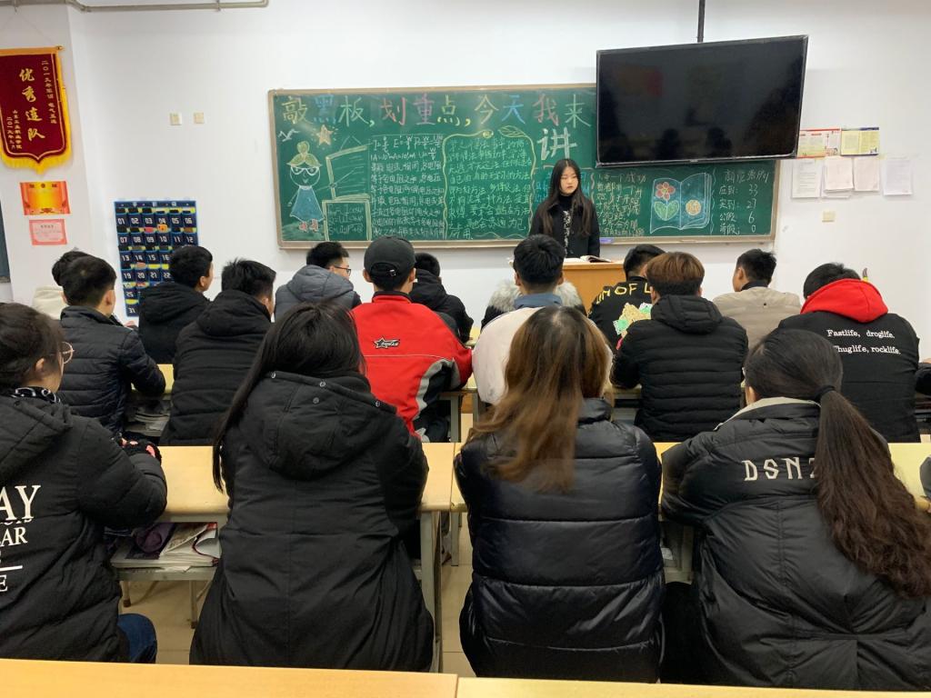 为迎接期末考试的到来,协助同学们积极备考,我系在12月26日晚自习期间,由各班学习委员组织举行“敲黑板,划重点,今天我来讲”学习课。