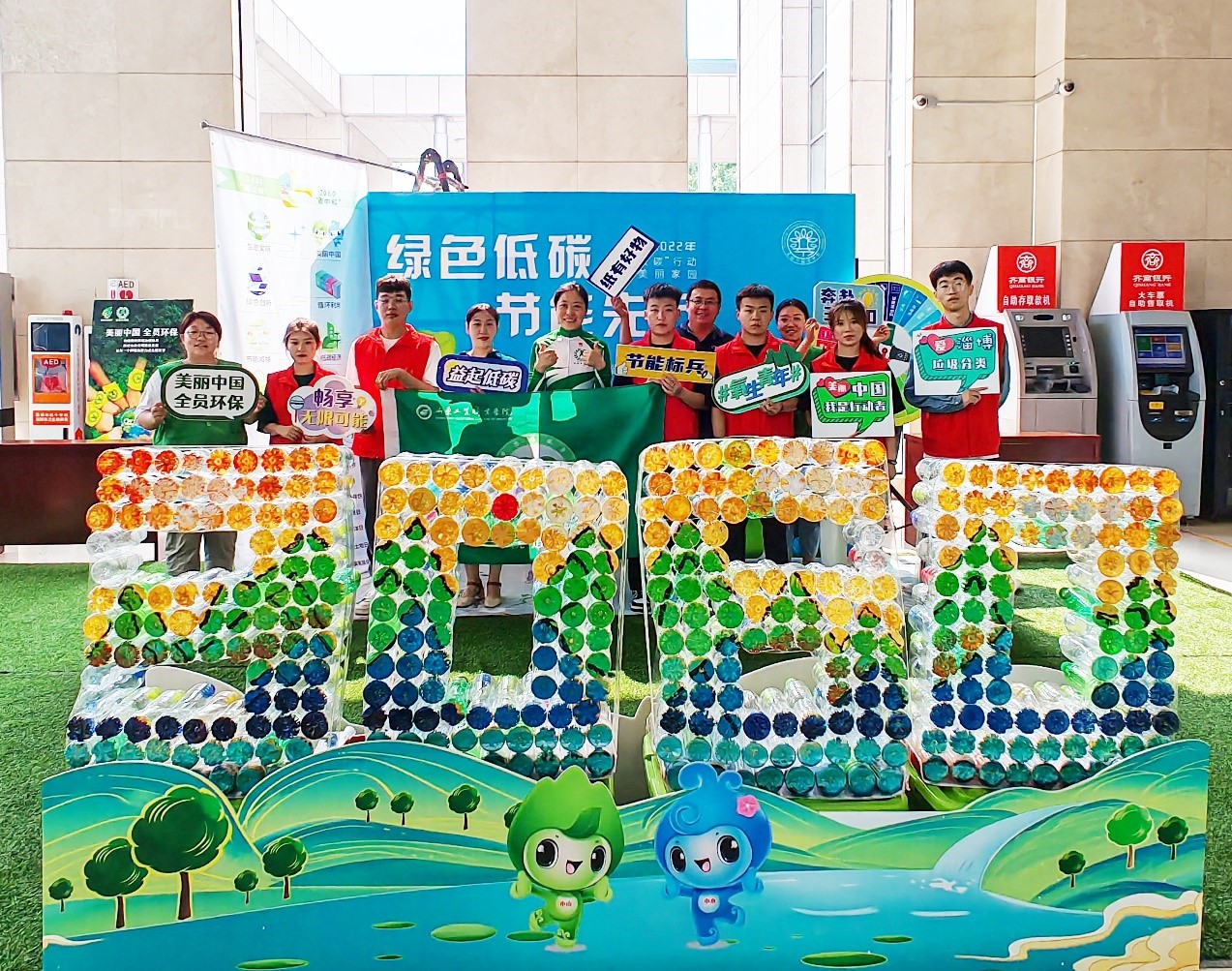 活动前,志愿者们提前从学校回收了塑料瓶,做成了“3060”环保装饰,象征着“生态文明、美丽中国”双向奔赴3060的远景目标。活动中,志愿者们通过“节能市集”、线上答题竞赛、绿色减碳指南等,为广大公共机构干部职工和市民们宣传如何切实从身边小事理解和践行绿色低碳行为、养成自觉习惯、甚至成为新风尚的引领者。
