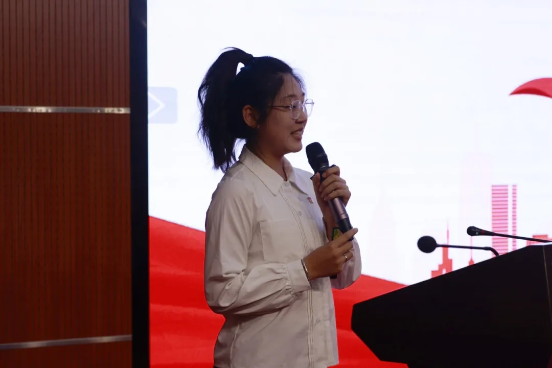 刘娜以《我愿做一盏灯,照亮别人,温暖自己》为题,讲述了时代楷模的事迹,以实际行动诠释着“时代楷模”的内涵,号召青年员工投身到志愿服务中,贡献自己的青春力量。